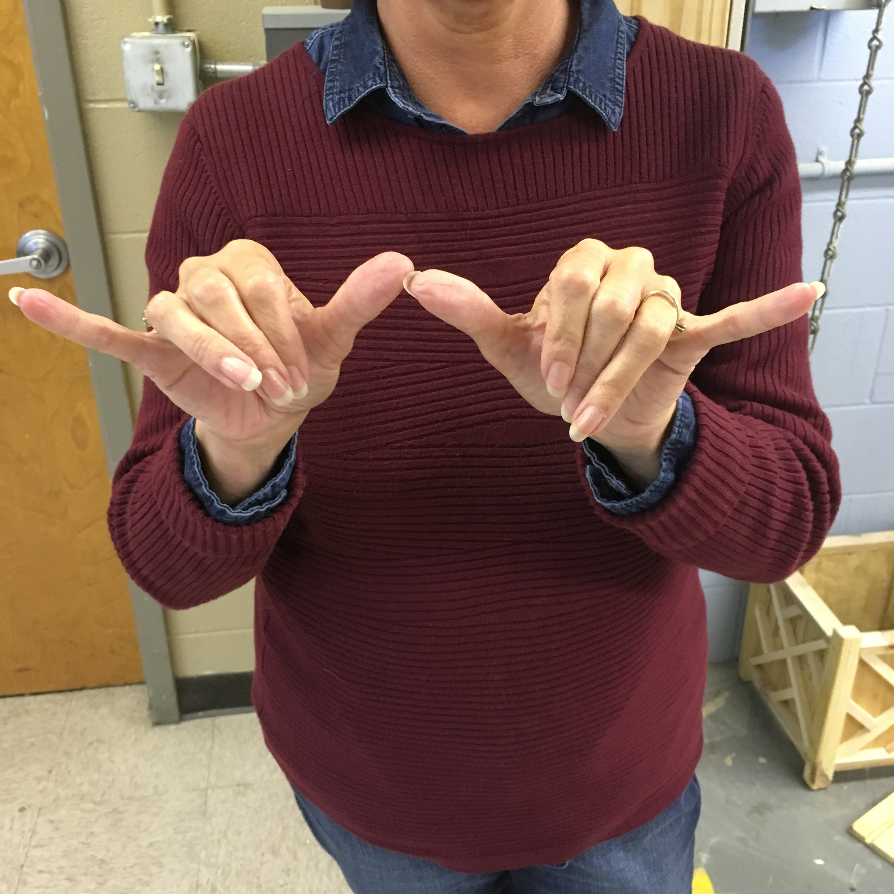 For example, he showed us how to sign “chalk line,” by snapping an invisible string to make a perfect edge. And how to sign “measure,” by bumping the tips of two thumbs together. There were signs for wood, saw, screwdriver, and thank you. I can only imagine how difficult it is to navigate the shop in silence; I rely on sound to keep me safe among so many buzzing blades and slamming hammers.