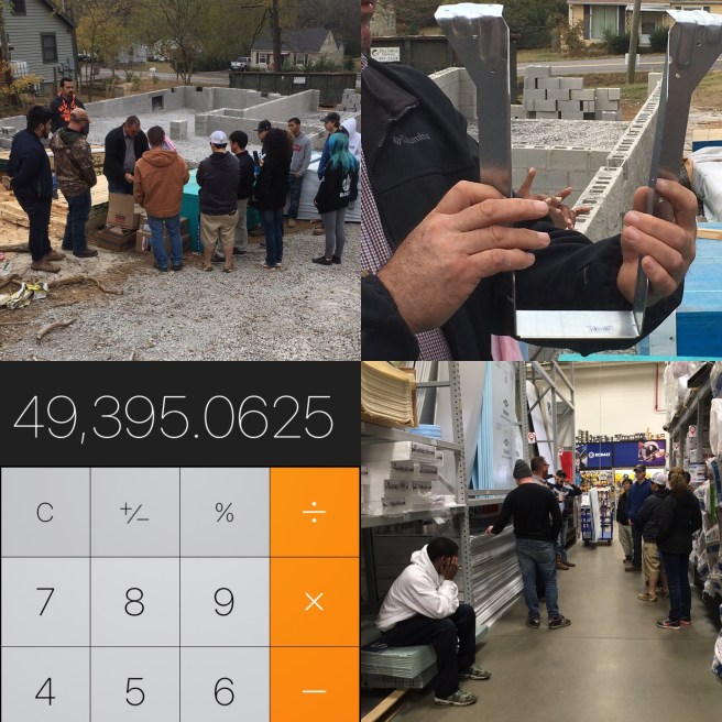 1. Arrive at construction site. No one there. Instructor says this is typical in Nashville’s building boom, where there’s more work than crews.