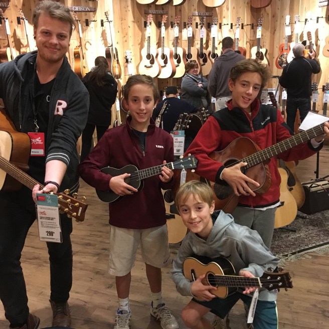 The choices were seemingly endless, but Nick at Guitar Center helped us narrow our search quickly, with one criteria for a beginner instrument: a solid top.
