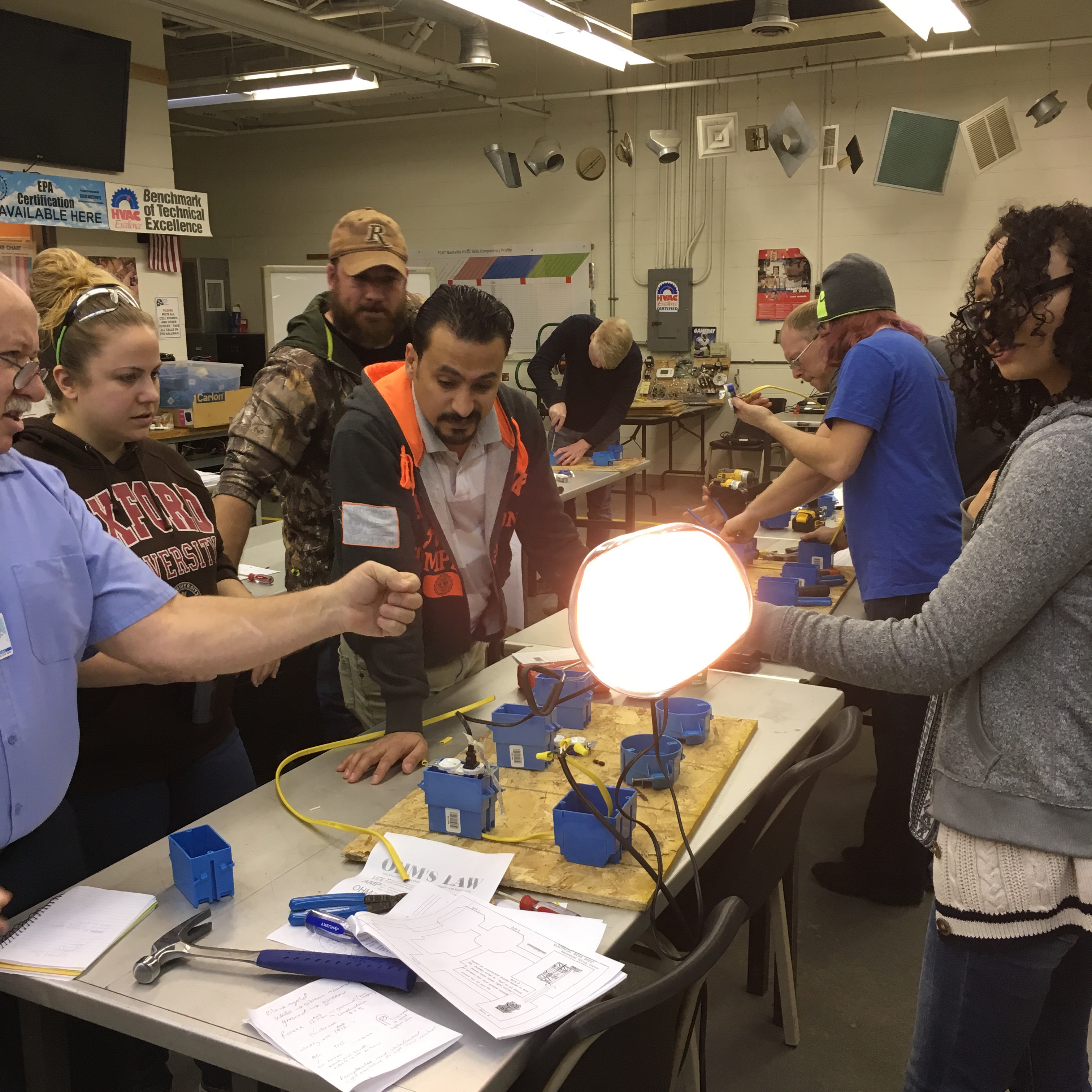 Thank you to instructor Barry (at the white board, below) and HVAC student Benny for their tireless patience in teaching us how circuits run. I will think of you guys every time I flip the 3-way light switch in my kitchen.