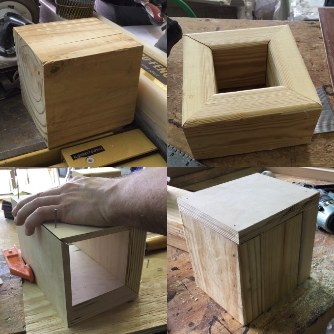 Another student mitered four 6-inch strips of 2×4 and added a 6×6 plywood top.