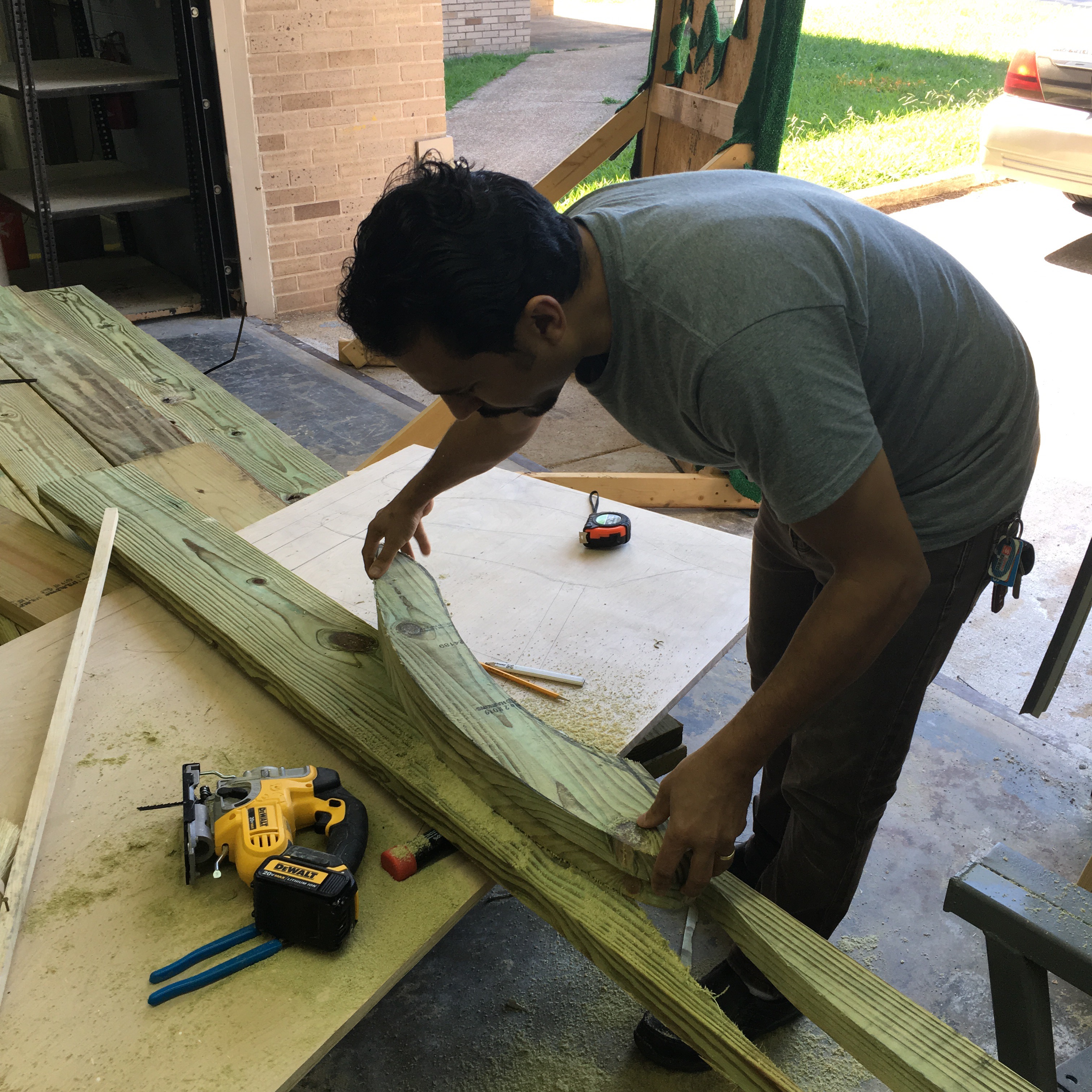One of their team members, who often serves as the “cut man” at the table and circular saws, was at loose ends, since it was unclear what size parts the chairs required. He didn’t know what to cut.