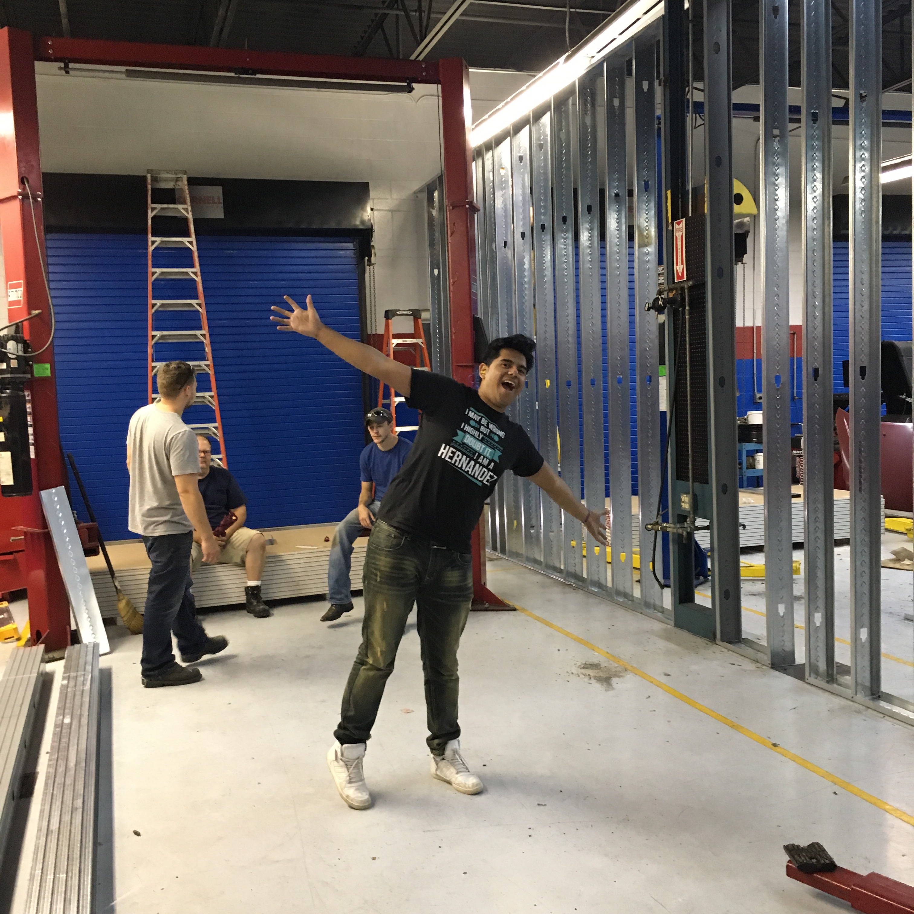 That’s the kind of extreme musical dichotomy we faced when a subset of construction class wanted to listen to Taylor Swift and a splinter group wanted to stream some very, very angry rock while we erected a 51×12-foot wall in the automotive building at Tennessee College of Applied Technology.