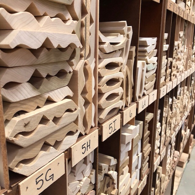 For a prime example of old-school craftsmanship, look no farther than the rows upon rows of drawers containing knives to create custom moulding profiles. Like an old-fashioned library card catalog, the drawers bring order to the infinite chaos of architecture, where every transition from floor to wall and wall to ceiling provides an opportunity for a different decorative solution. Quarter-round, beaded, Shaker, Colonial…The options for moulding profiles are limitless. It can be overwhelming choosing among the curves and angles in their infinite permutations, not to mention trying to match existing mouldings among so many variations.